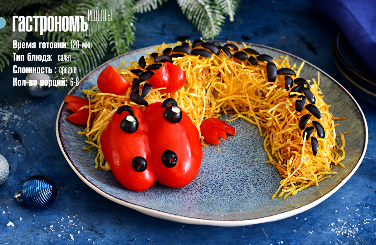 Салат «Дракон» станет настоящим украшением любого праздничного стола. Это не только эффектное блюдо, но и невероятно вкусное угощение, которое обязательно произведет впечатление на всех гостей!