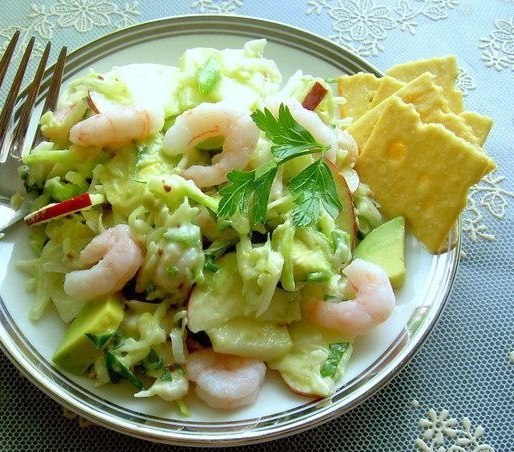Салат, который не только радует глаз, но и завораживает вкусом, стал настоящим украшением многих столов. Это сочетание креветок, свежих яблок и мягкого авокадо, заправленное сливочно-горчичным соусом, обеспечит идеальный баланс вкусов для любого случая.
