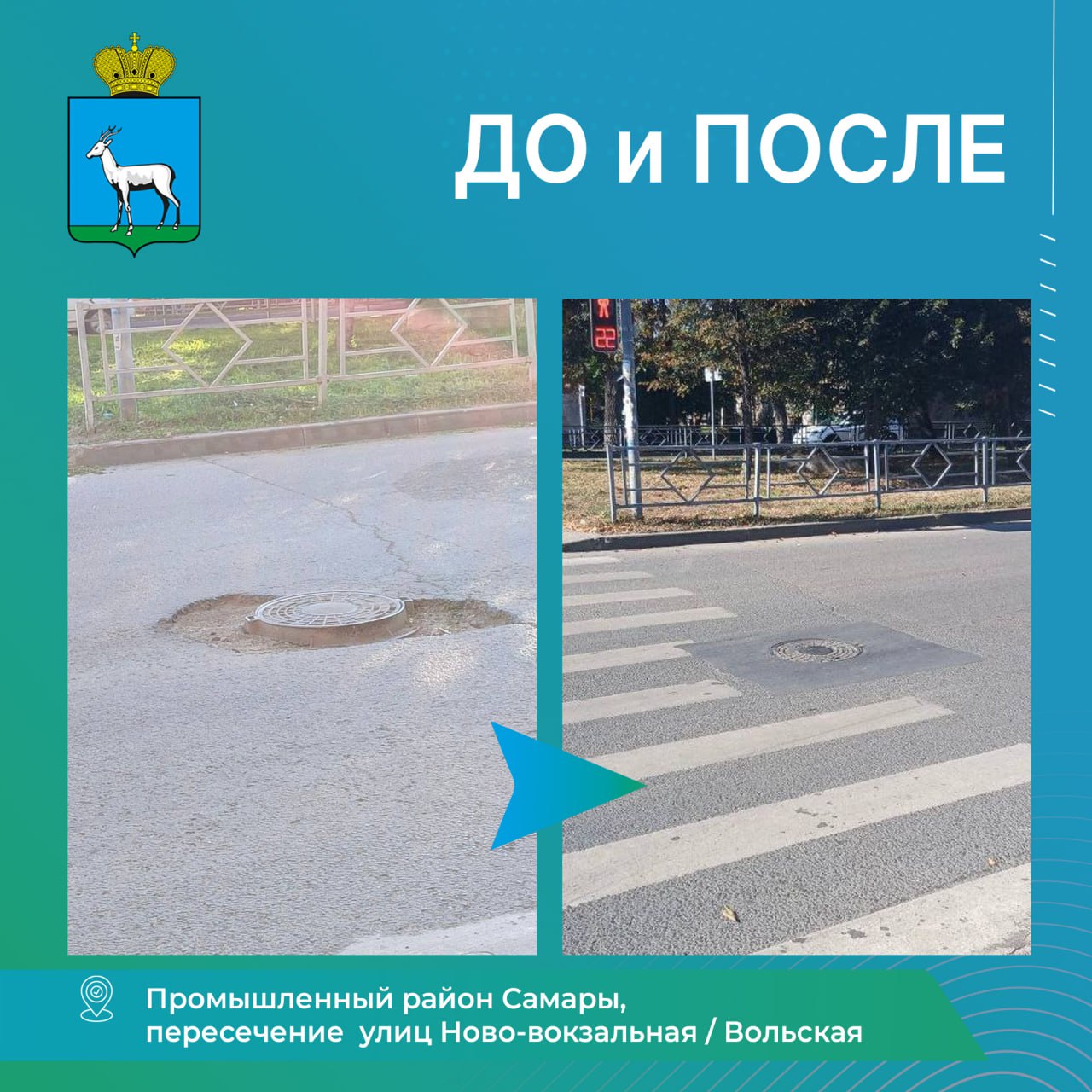 Провал асфальта на пересечении улиц Ново-вокзальной и Вольской устранен