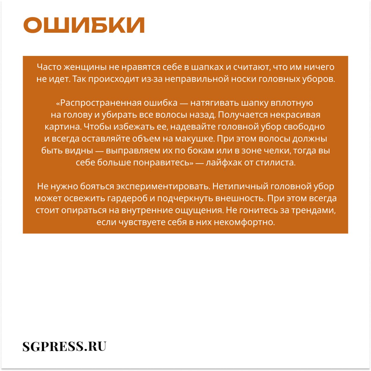 Стилист Ольга Черепанова рассказывает, какие модели будут в тренде этой осенью, как подобрать головной убор под стиль и форму лица и каких ошибок лучше избегать.