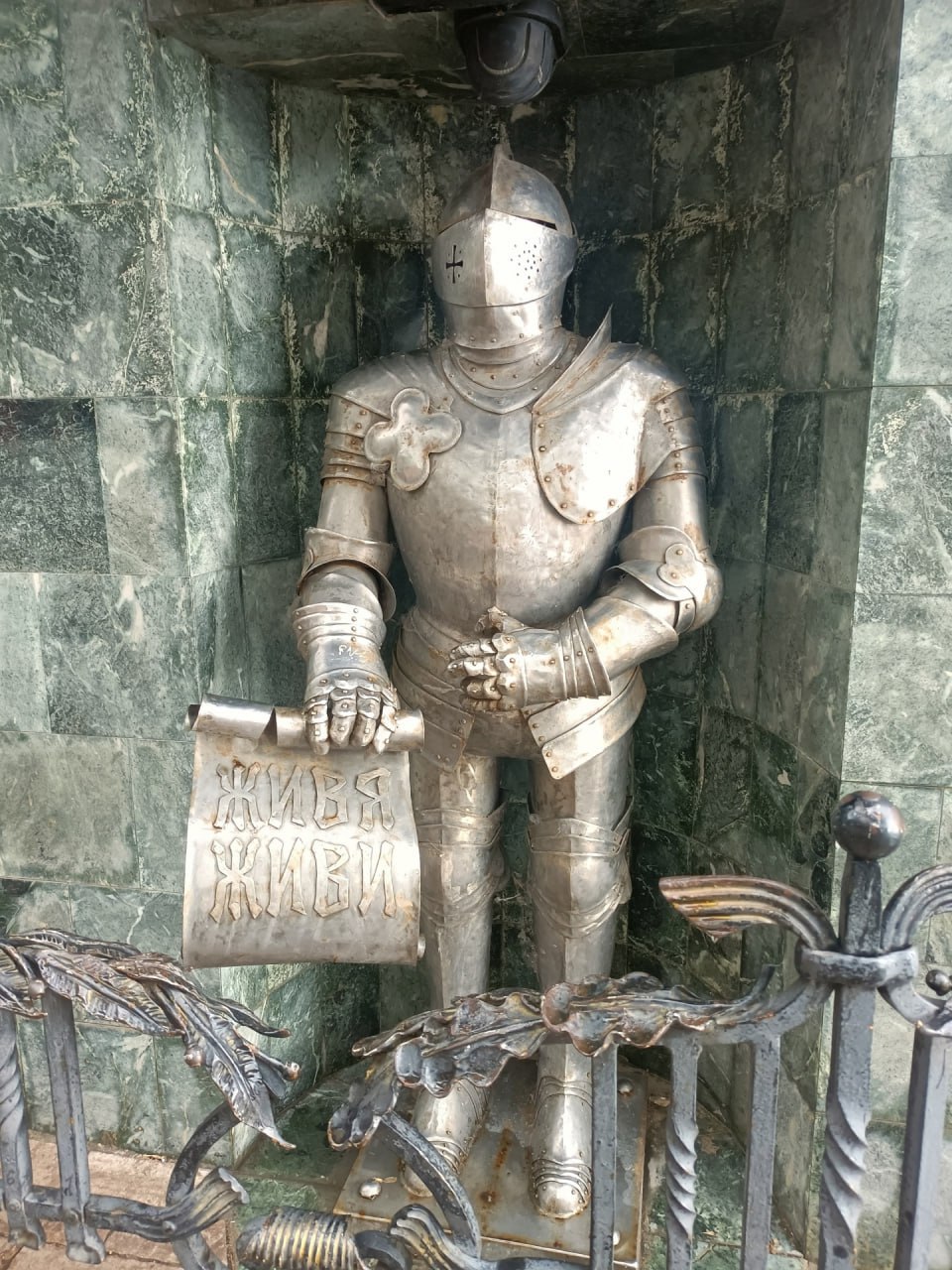 Речь идет о знаменитом рыцаре, который держал свиток с надписью «Живя - живи». Таким он был до 5 октября. Теперь же ни свитка, ни руки, чтобы его держать. Фото делится «Самара с огоньком».