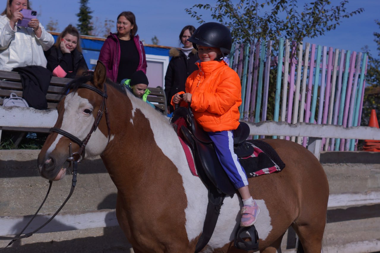 Следующей остановкой стала конная прогулка. Участники смогли пообщаться с лошадьми, узнали об их характерах и повадках. И дети, и взрослые с восторгом прокатились на одной из местных красавиц.