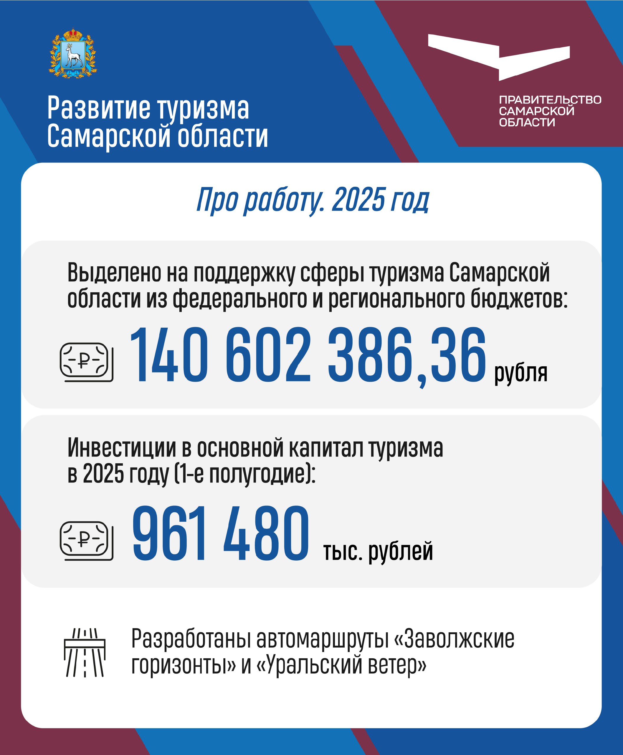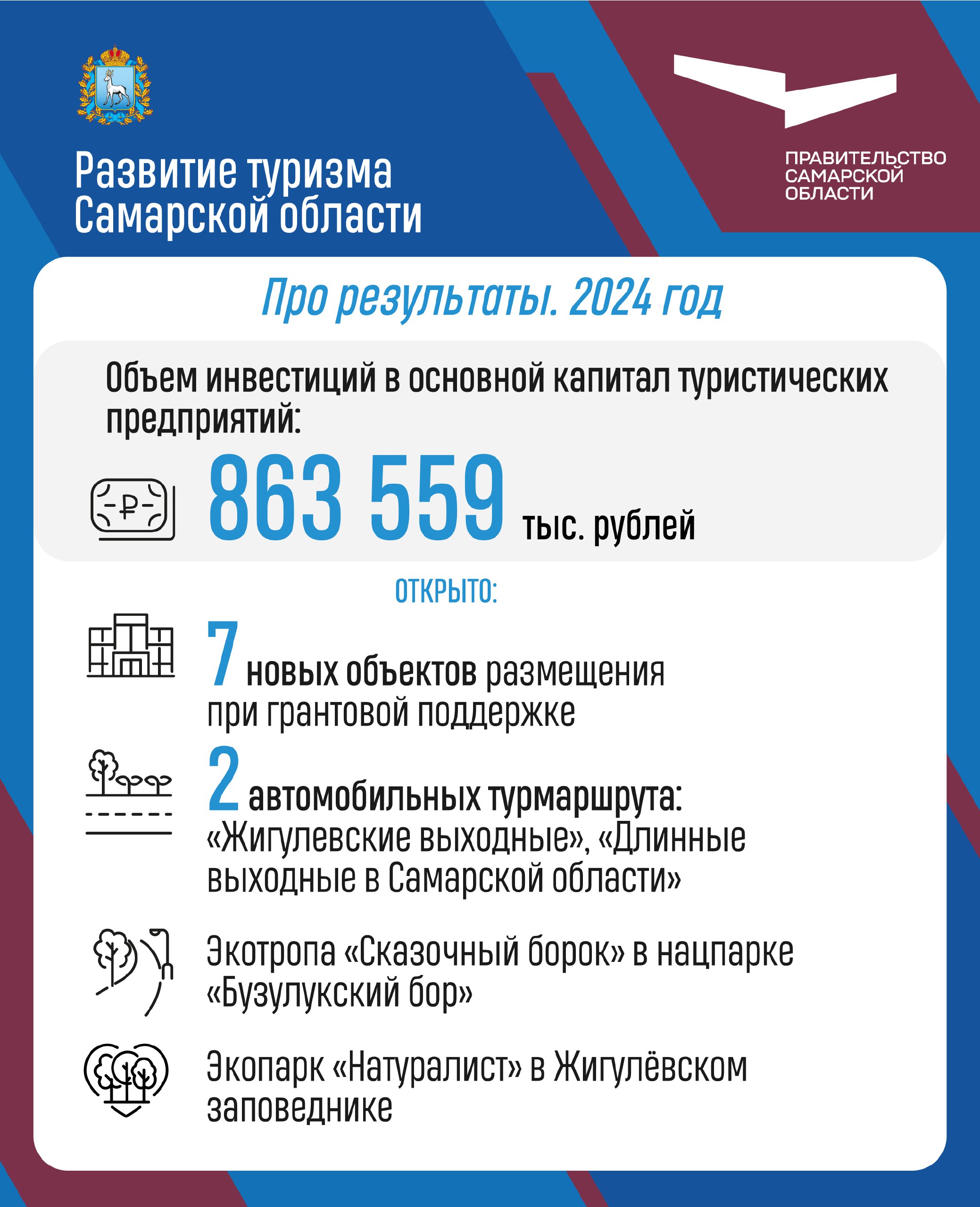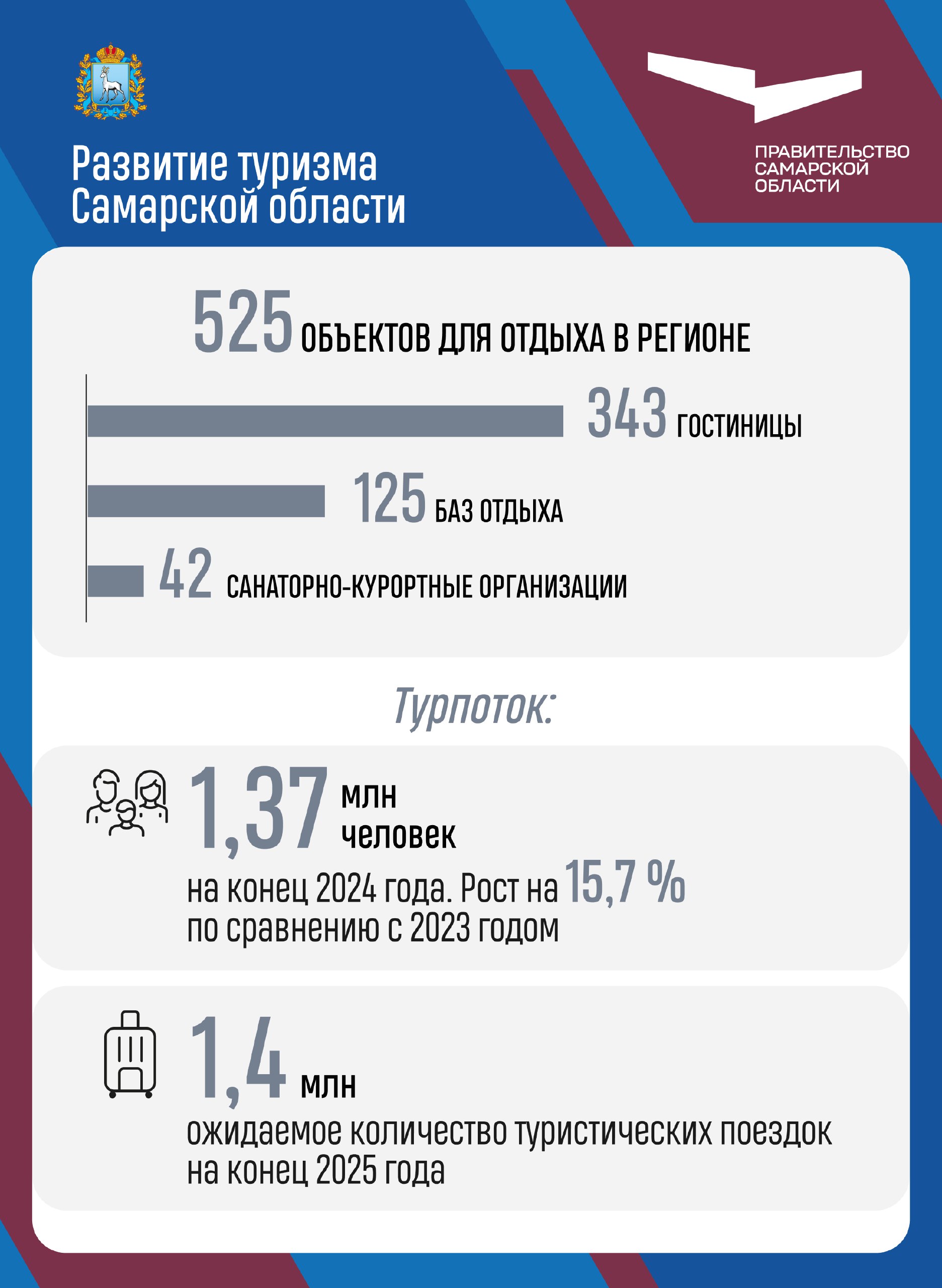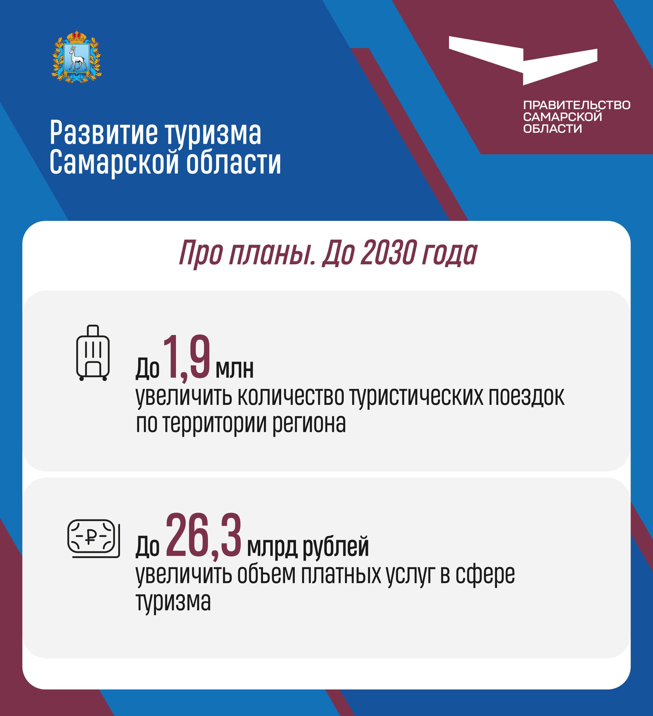 Главная цель — повысить туристическую привлекательность региона. Ключевыми точками роста станут четыре туристических кластера: «Жигулевская гавань» (Сызрань, Сызранский и Шигонский районы), «Сила Поволжья» (Сергиевский и Челно-Вершинский районы), «Земля Жигулей» (Самара, Тольятти, Чапаевск и Новокуйбышевск) и «Дыхание Поволжья» (Жигулевск, Ставропольский и Волжский районы).