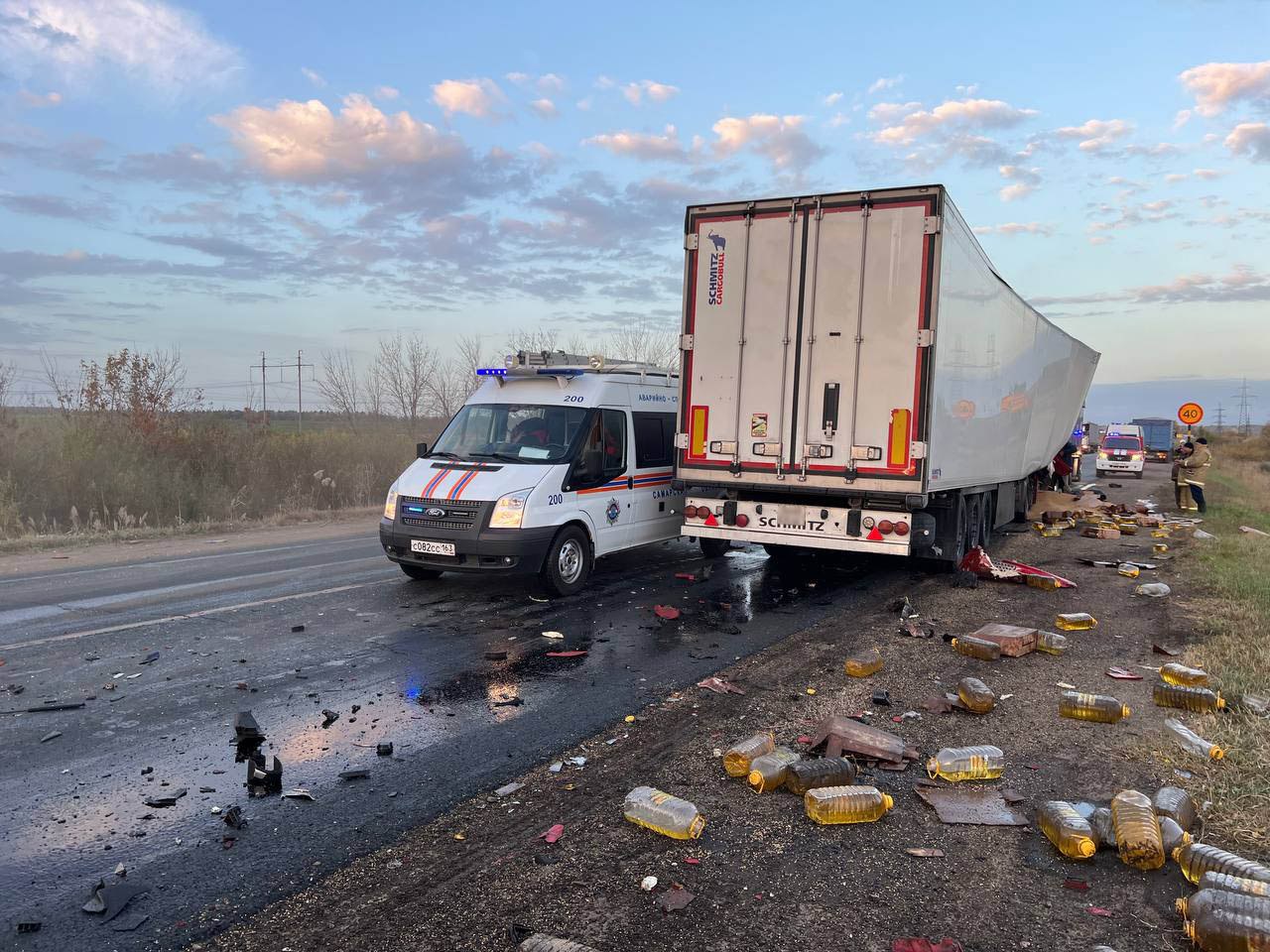 По предварительным данным, 7 октября в 05:45 29-летний водитель грузовика MAN, двигался по аавтодороге «Самара-Пугачёв -Энгельс –Волгоград». На 39 км он нарушил дистанцию и врезался в КамАЗ с прицепом под управлением 32-летнего водителя.