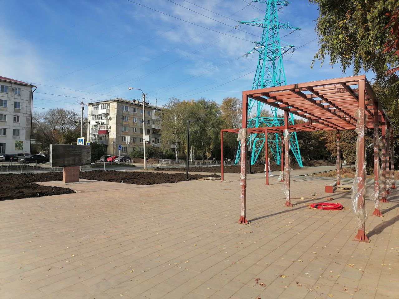 Заметно поменялась территория у центральной библиотеки. Она вся вымощена плиткой, сделаны газоны. Привезли оборудование для установки амфитеатра с навесом и качелями и уличной библиотеки. У городского рынка «Солнечный» установлены новые торговые павильоны. Обустроен огромный газон, высажены кустарники. В небесно-голубой цвет покрашены две опоры ЛЭП. В начале улицы на пересечении с улицей Советская установлена необычная стела«Отрадный».