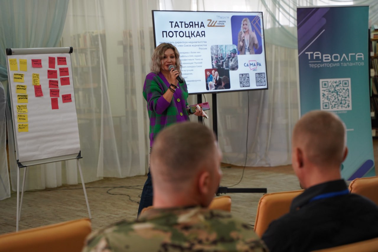 Спикером выступила член Общественного совета программы «Школа героев» Татьяна Потоцкая, заместитель директора медиаагентства «Самара 450». Она поделилась с курсантами профессиональными техниками, которые помогают уверенно держаться перед аудиторией, грамотно реагировать на нестандартные ситуации и отвечать на острые вопросы.