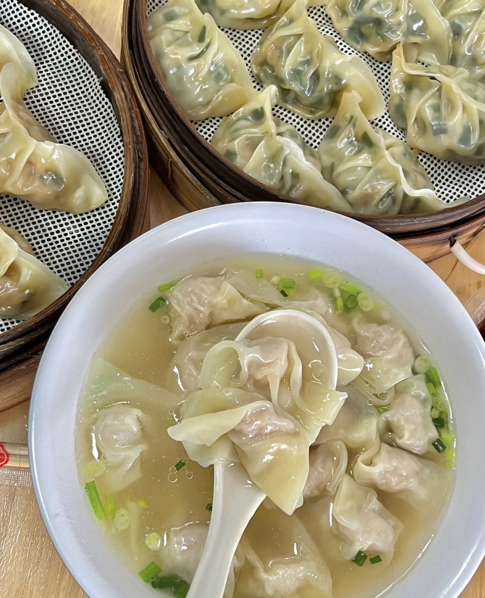 - Цзяоцзы: Традиционные пельмени в форме полумесяца, созданные из пшеничного теста с начинкой из свиного фарша, капусты и зелёного лука. Их варят и обжаривают, подавая с соевым соусом.