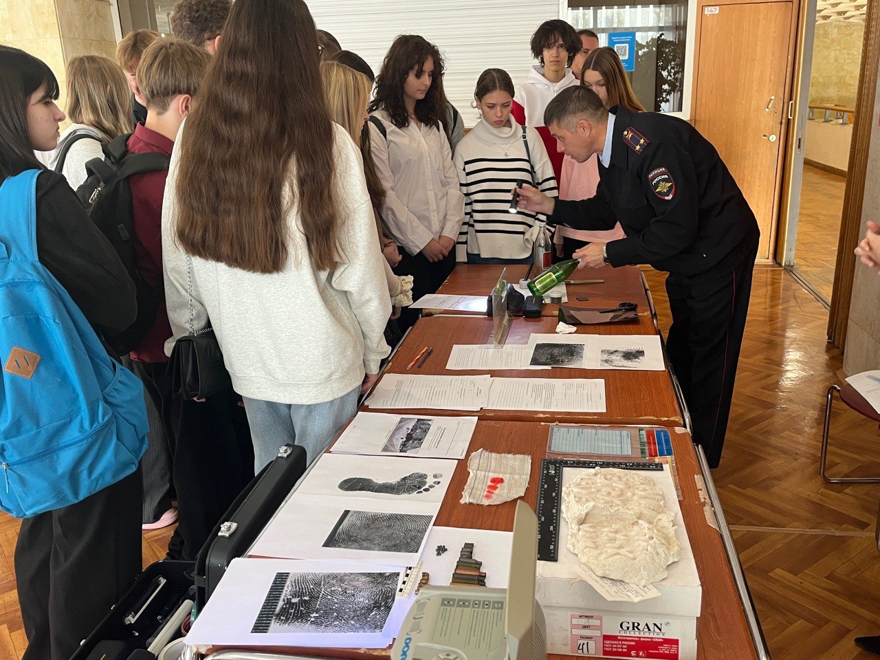 Ребята познакомились с работой разных подразделений: от кинологов до криминалистов. Увидели служебное оборудование, сняли отпечатки пальцев, рассмотрели оружие и узнали, как поступить в вузы МВД и связать свою жизнь со службой в органах.