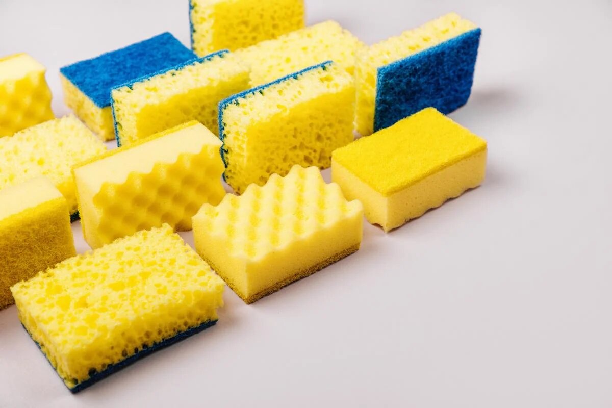 - Приготовьте раствор из половины чайной ложки отбеливателя на каждый литр теплой воды, погрузите губку на 5 минут, затем тщательно смойте.