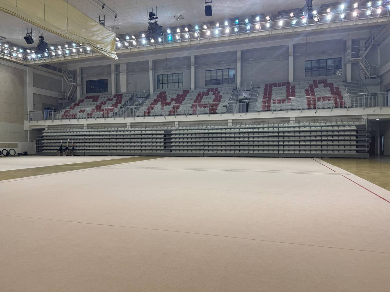Параллельно ведутся внутренние работы в залах художественной и спортивной гимнастики, коридорах, раздевалках и санузлах. На данный момент ремонт внутри учреждения выполнен на 99%, а полное завершение запланировано на 15 октября 2025 года.