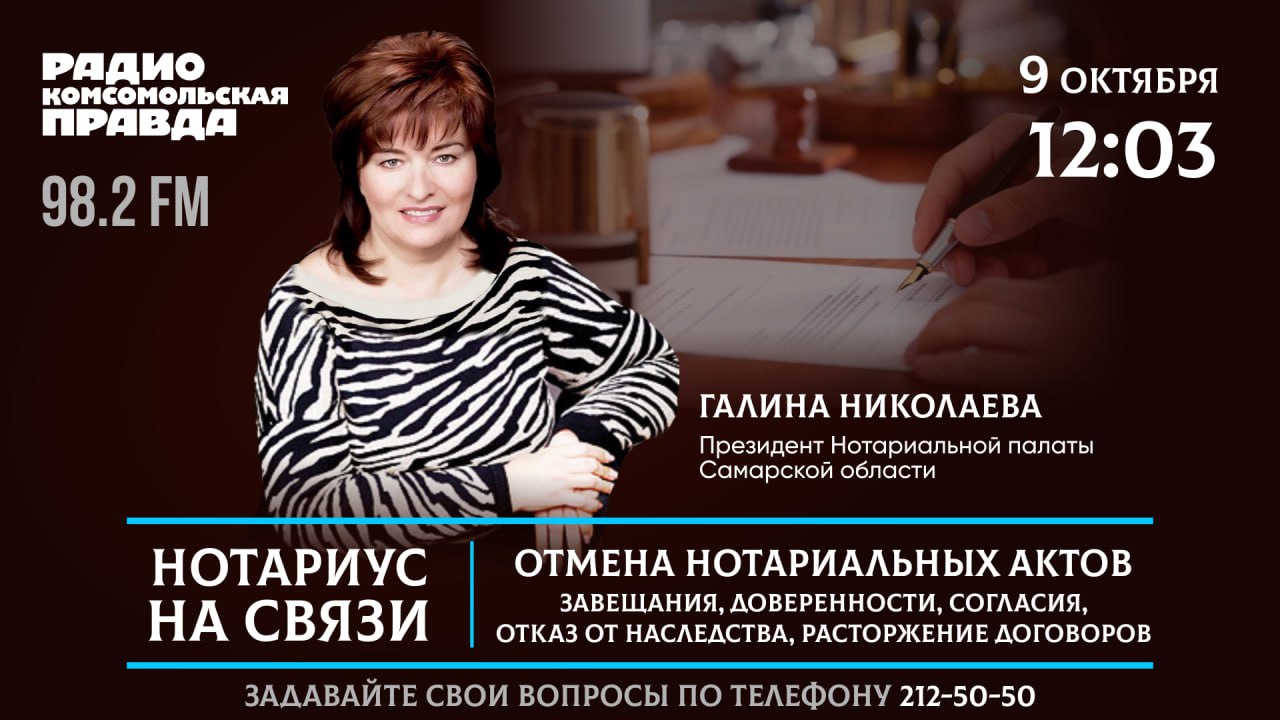 Готовьте свои вопросы! Как всегда, будет возможность задать их в прямом эфире президенту Нотариальной палаты Галине Николаевой.