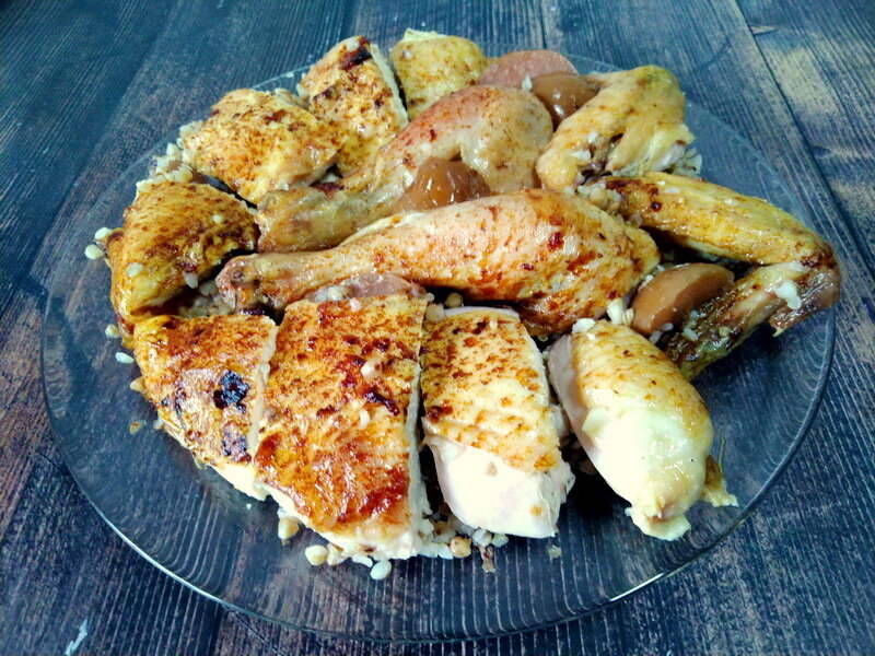 Когда курица готова, ее стоит разрезать и подать вместе с гарниром из гречки и яблок. Это не только сытное, но и невероятно вкусное блюдо, которое подойдет для любого стола. Приятного аппетита!