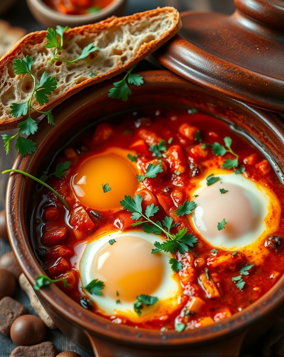 Шакшука имеет свои корни в кухне северной Африки и ????? ??????. Однако блюда с яйцами и овощами известно во многих странах. Главное в успехе шакшуки — это идеальный баланс между вкусом и текстурой, который создает ее универсальность.