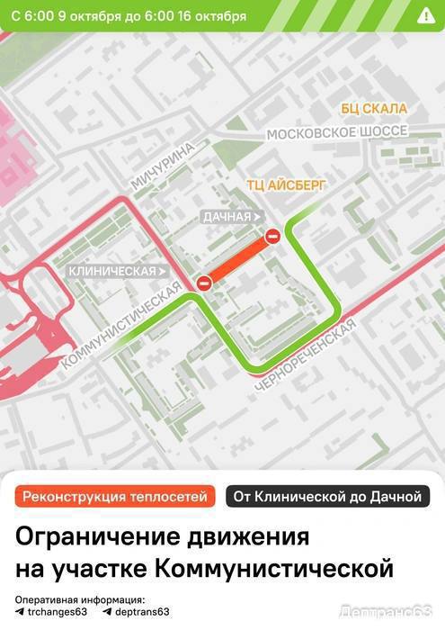 С 9 по 16 октября в Самаре частично перекроют движение по улице Коммунистической.