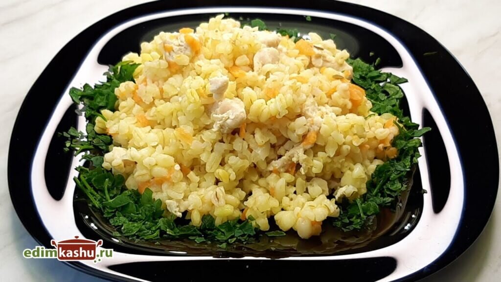 Готовый булгур с курицей подается к столу, щедро посыпанный свежей зеленью. Это блюдо поразит гостей своим вкусом и простотой, делая его идеальным для любого случая. Насладитесь каждым укусом и приготовьте этот легкий, но сытный ужин с удовольствие!