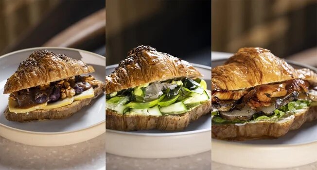 - Круассан с авокадо и водорослями: В этом варианте ваш круассан будет наполнен авокадо, свежим огурцом и бобами эдамамэ, создавая легкое и полезное блюдо. Заправка не нужна, достаточно немного лимонного сока для акцента.