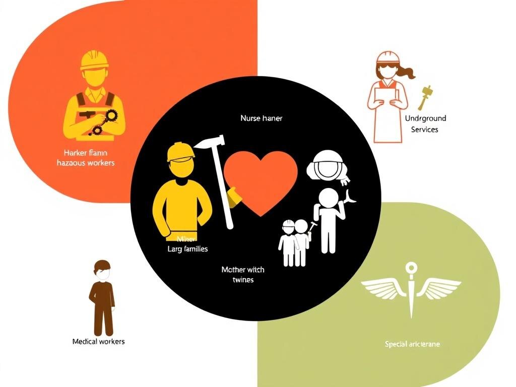 - Многодетные матери: Учитываются различные преференции в зависимости от числа воспитанных детей. Например, материалы, воспитывающие пятерых детей, могут оформлять пенсию в 50 лет.