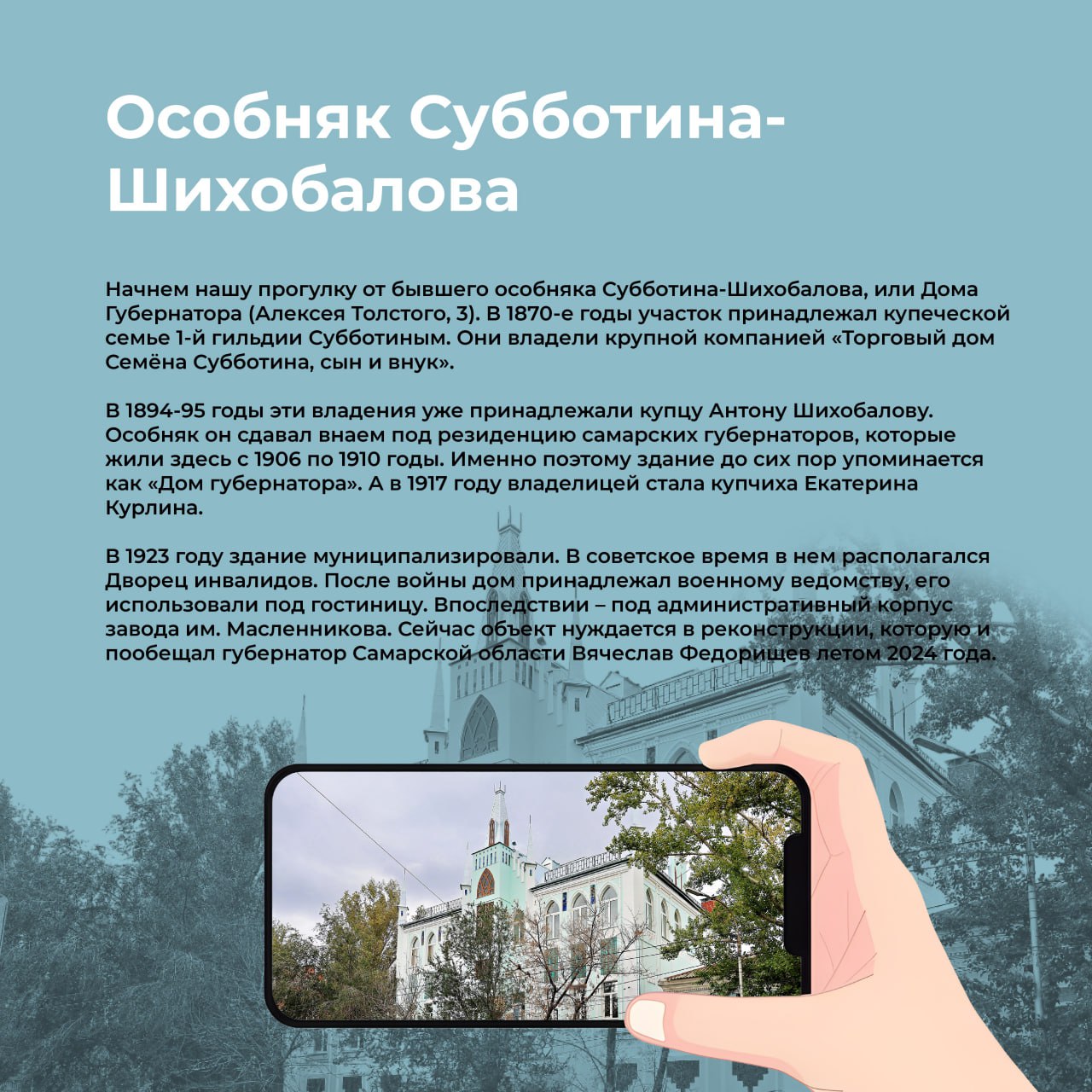В проекте «Самара пешеходная» мы рассказываем о главных улицах нашего города, их достопримечательностях, известных домах и арт-объектах. Сегодня наш маршрут пройдет по улице Алексея Толстого. Изначально она именовалась Большая, в советский период — улица Обороны, а в дореволюционное время – Казанская. В 1983 году получила нынешнее название в честь русского писателя Алексея Толстого. Протяженность улицы – 1,9 км.