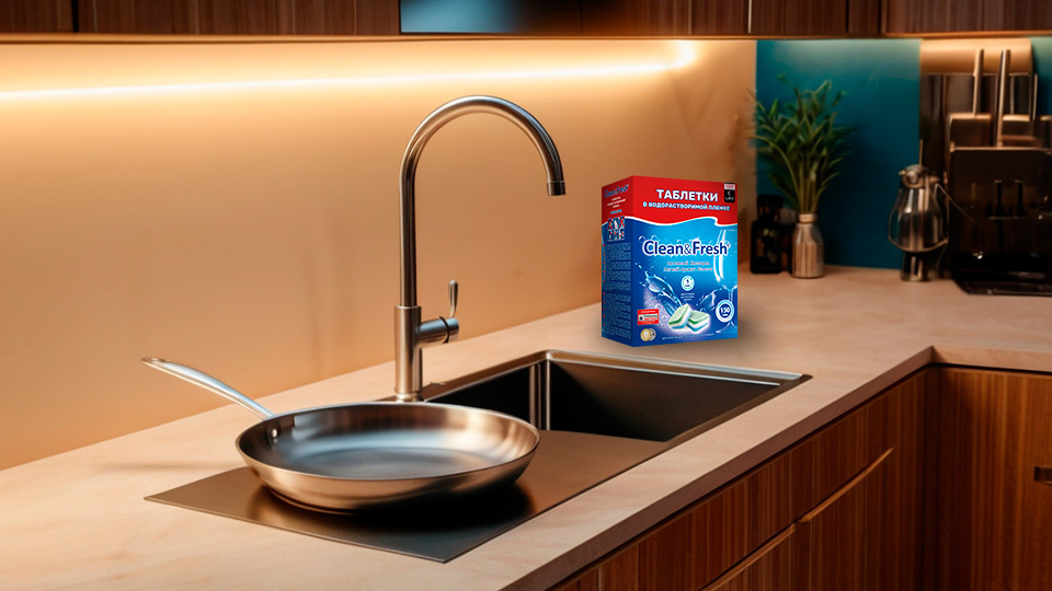 Компоненты этих таблеток предотвращают потемнение посуды из нержавейки, сохраняя ее блеск. Хрустальные бокалы лучше мыть отдельно, включив только режим ополаскивания, чтобы добиться идеального внешнего вида. Добавление ополаскивателя Clean&Fresh придаст вашим фужерам сияние.