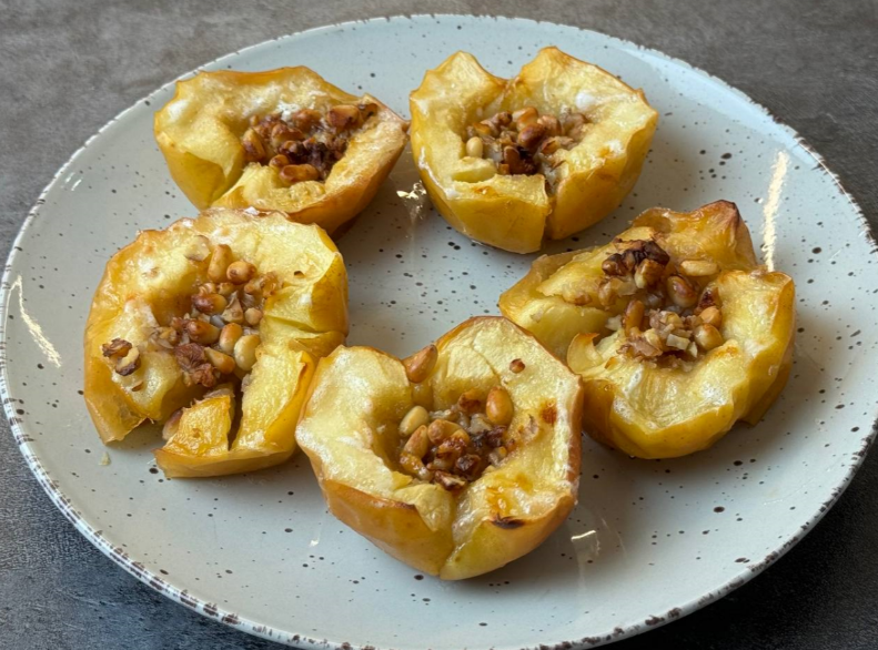 - Начините их грецкими и кедровыми орехами, добавьте мед для сладости и аромата.