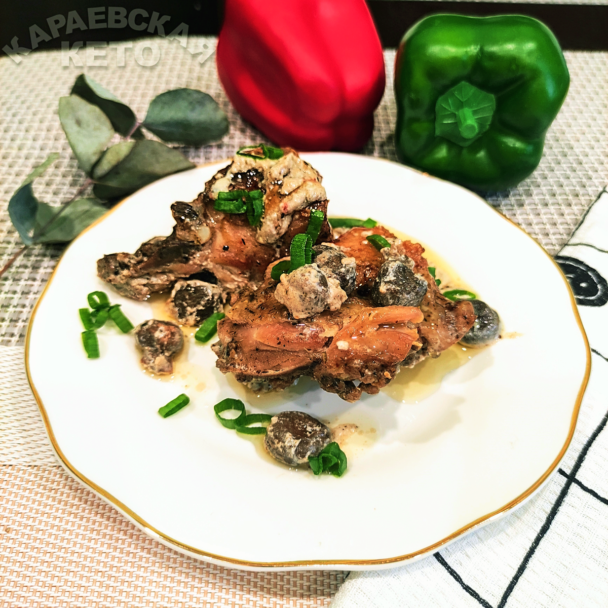 Когда грибы начнут выделять сок, пора влить сливки и продолжить тушение на медленном огне, пока курица не достигнет полной готовности. Завершить приготовление можно свежей зеленью, которая добавит ярких красок и улучшит презентацию блюда.