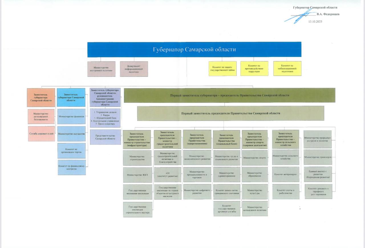 Губернатор Самарской области Вячеслав Федорищев утвердил новую структуру правительства региона. Документ опубликован на сайте областного правительства.