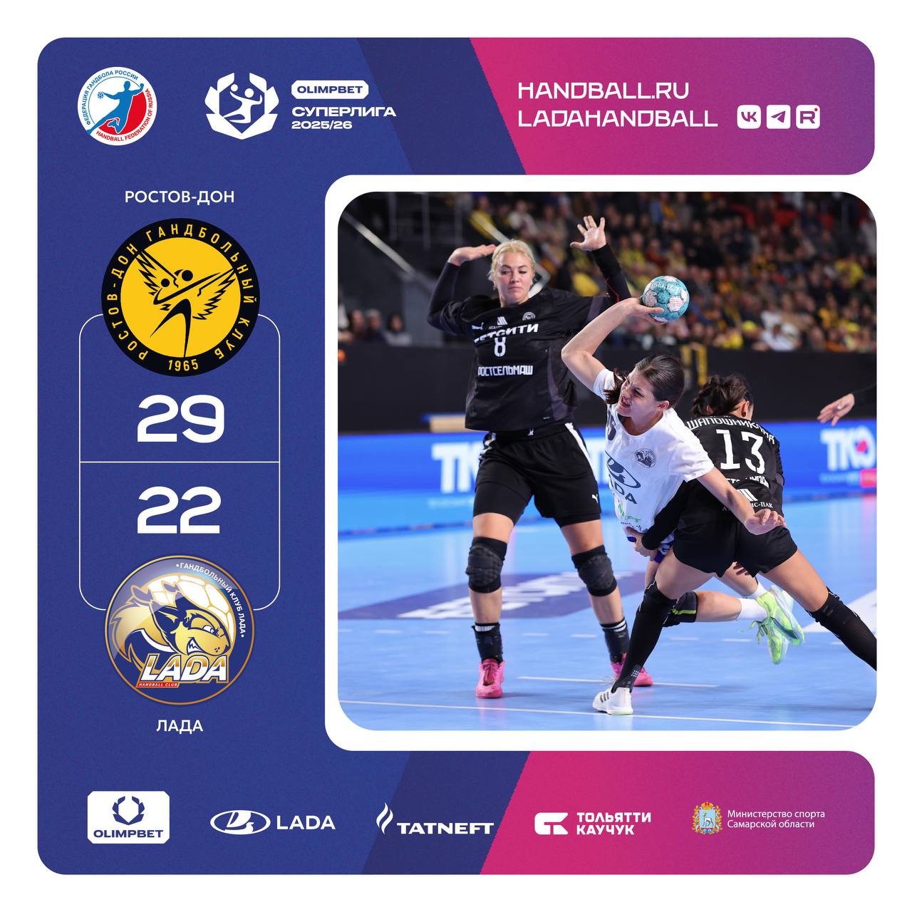 Матч «Ростов-Дон» (Ростов-на-Дону) - «ЛАДА» (Тольятти) завершился со счетом 29:22 (11:10).