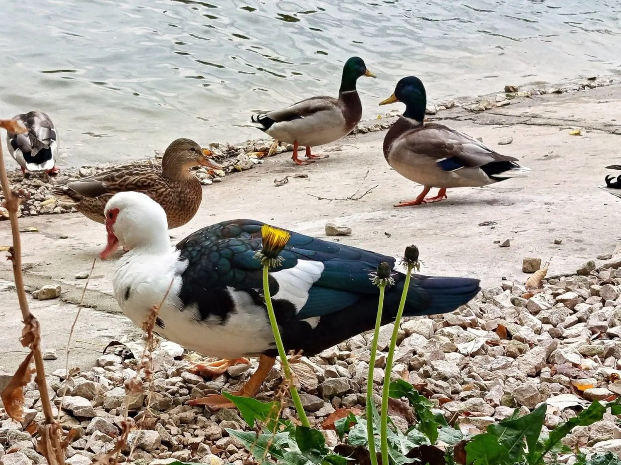 Это мускусная утка. Длина тела самцов может достигать 90 сантиметров! Фото делится «Самарская газета». Таких уток часто разводят на мясо. Возможно, эта утка сбежала из птичника и присоединилась к более свободным пернатым товарищам.