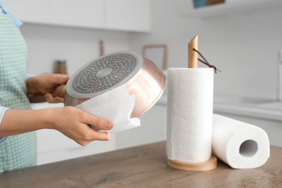 - Не ставьте сковороды друг на друга без защиты поверхности. Лучше положите между ними мягкое полотенце.