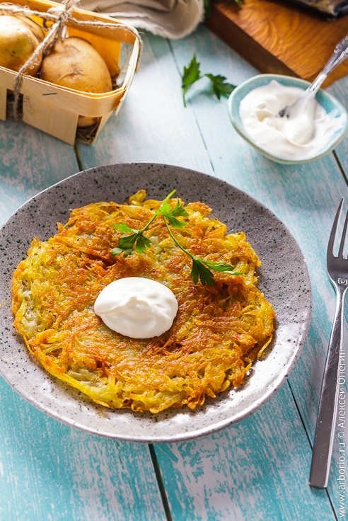 Процесс создания этого великолепного блюда предельно прост. Для начала очищают картошку и натирают её на крупной тёрке. Затем картофель следует приправить солью и свежемолотым чёрным перцем. Далее добавляется пару ложек растительного или растопленного сливочного масла, после чего картошку нужно тщательно перемешать. Важно не затягивать с этой процедурой: следует действовать быстро, чтобы картофель не потемнел и не утратил свою свежесть.