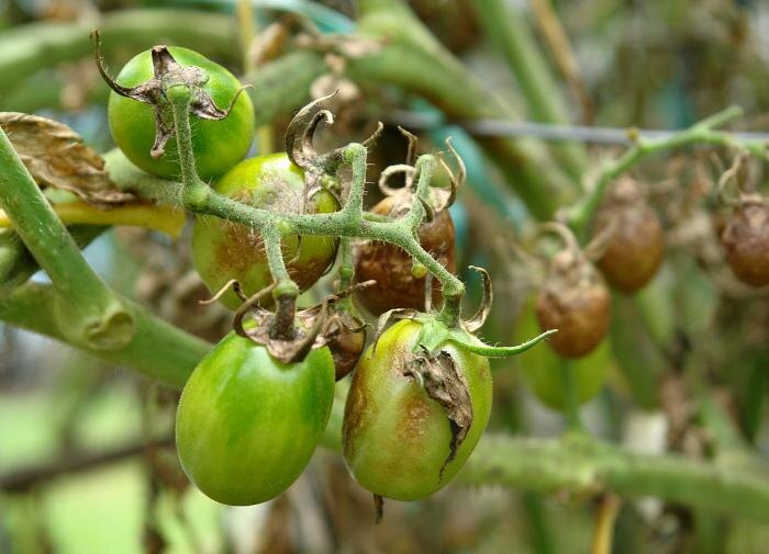 - Фитофтороз. Это грозное грибковое заболевание начинается с темнеющих плодов и затем приводит к образованию белесого налета. Чаще всего возбудители активны при высоком уровне влажности и плохой циркуляции воздуха.