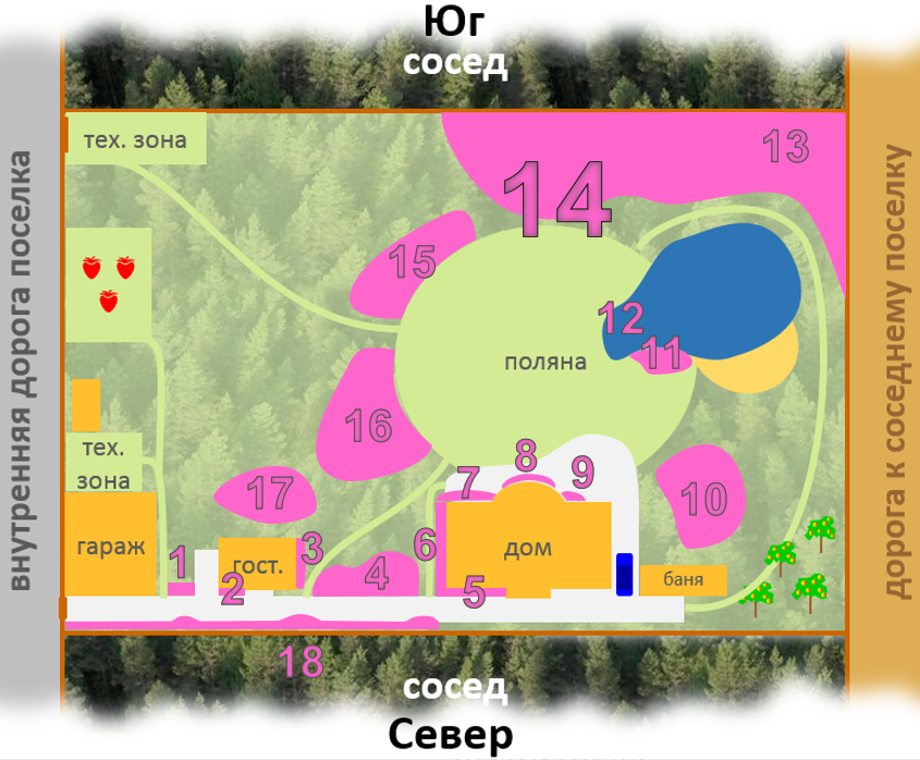 Каждое растение подобрано так, чтобы создать единую цветовую палитру: акцент на белых, голубых и розовых оттенках с возможностью добавления ярких красно-фиолетовых цветов. Это сплетается в нечто большее, чем просто декоративный сад: формируя жилище для рододендронов и хвойных, создаётся гармония, где каждый элемент находит своё место.