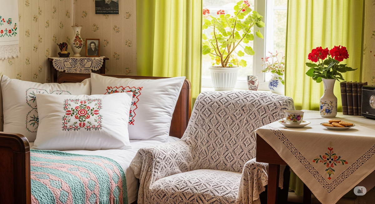 Текстиль играет ключевую роль в создании уюта. Мягкие пледы, аккуратные занавески и вязаные подушки могут сделать любое пространство более живым и привлекательным. Прошедшие через руки, а не только магазинные, такие детали сохраняют тепло и добавляют индивидуальности в интерьер.