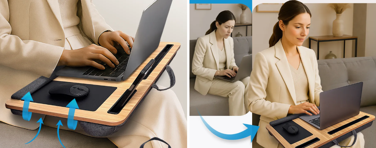 - Подставка для ноутбука: забудьте о работе на коленях! Эта подставка превратит любое место в ваш личный офис. Она помогает избежать перегрева устройства и делает просмотр фильмов максимально комфортным. Подходит для любых ноутбуков и планшетов.