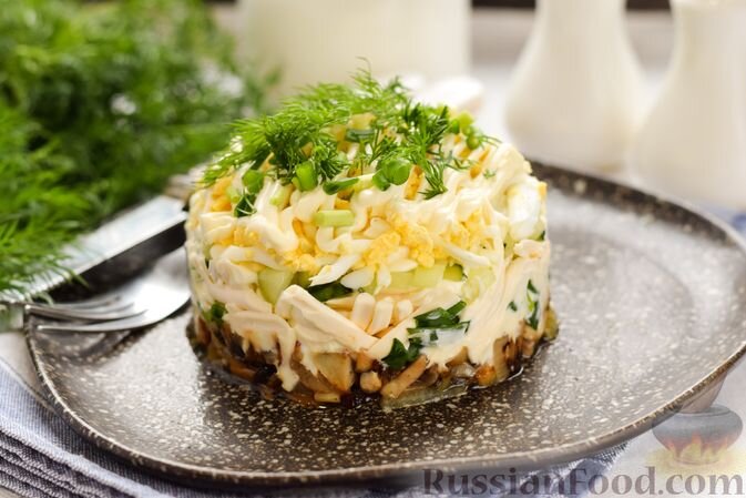 Не стоит забывать о слоёных салатах, которые всегда произведут впечатление на гостей. Например, слоёный салат с шампиньонами, плавленым сыром и свежими огурцами порадует всех своим гармоничным вкусом. Грибы, плавленый сыр и зелень создадут восхитительное сочетание, а время на пропитку только добавит всем ингредиентам глубокого аромата. Любой из этих салатов не только украсит стол, но и станет его главной изюминкой.