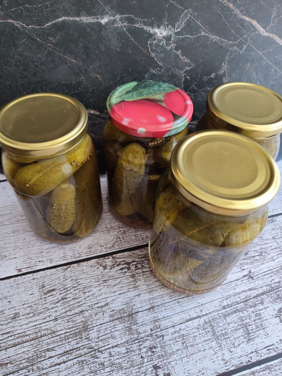 В конце необходимо добавить в каждую банку 3 чайные ложки яблочного уксуса или 0,3 чайной ложки лимонной кислоты. После этого крышки завинчиваются, а банки переворачиваются на крышку и накрываются одеялом на сутки для охлаждения. После полного остывания, огурцы можно разместить в кухонном шкафу.