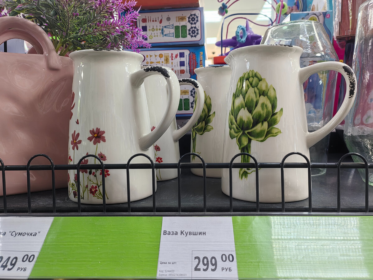 Покупатели обнаружат также красивый кувшин с эффектом повреждённой эмали — идеальный элемент для создания романтичного настроения на даче. Ностальгические детали, такие как покосившиеся краешки, добавляют особенный шарм. Это не просто посуда; это маленький кусочек из детства, напоминающий о простых радостях.