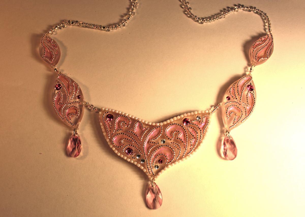 Работа включает в себя не только формирование основной конструкции, но и последующее украшение. Мастера применяют разные техники для укладки бисера и страз, фиксируя их в эпоксидной основе. Полученные изделия могут носиться с удовольствием, их можно сочетать с различной одеждой и использовать в разных ситуациях.