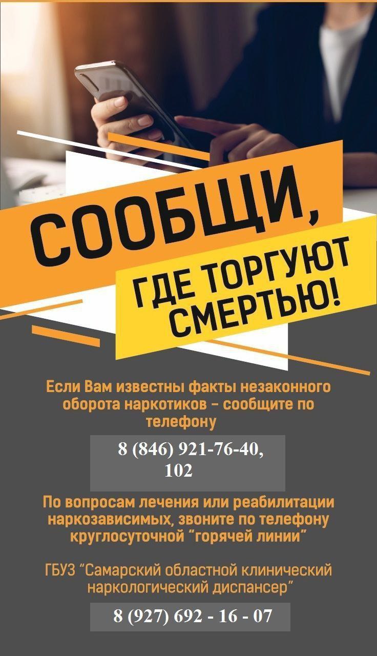 Самарская полиция призывает жителей города не оставаться равнодушными и сообщать обо всех известных фактах незаконного оборота наркотических средств и психотропных веществ в ближайший отдел полиции или по номеру «102».