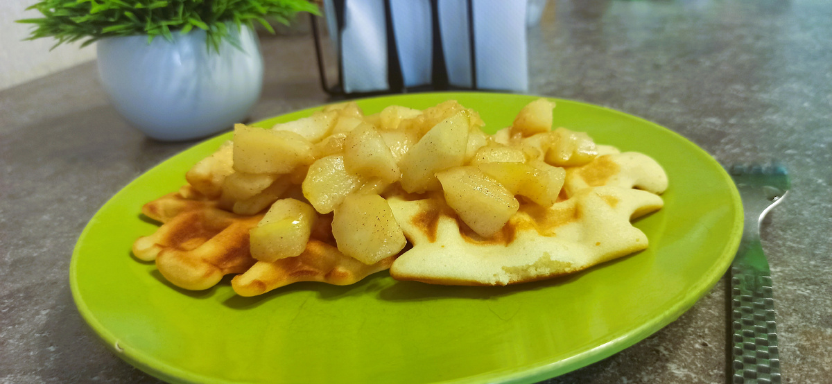 На готовые вафли выкладываются обжаренные яблоки, что создает настоящий феерический вкус. Для завершения, можно добавить немного корицы или взбитых сливок — это придаст блюду дополнительную сладость и сделает его ещё более привлекательным для детей и взрослых.