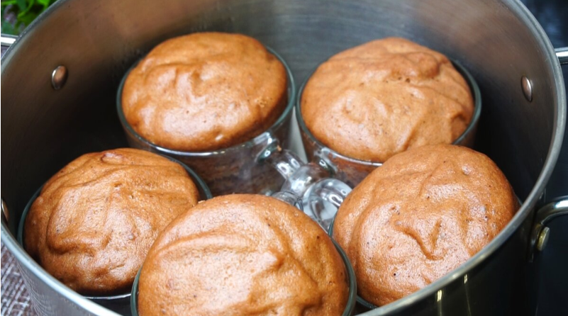 По истечении времени проверьте кексы на готовность с помощью деревянной шпажки. Если шпажка выходит сухой, можно приступить к извлечению кексов из стаканов. Они будут легко отделяться, если аккуратно пройтись ножом по краям.