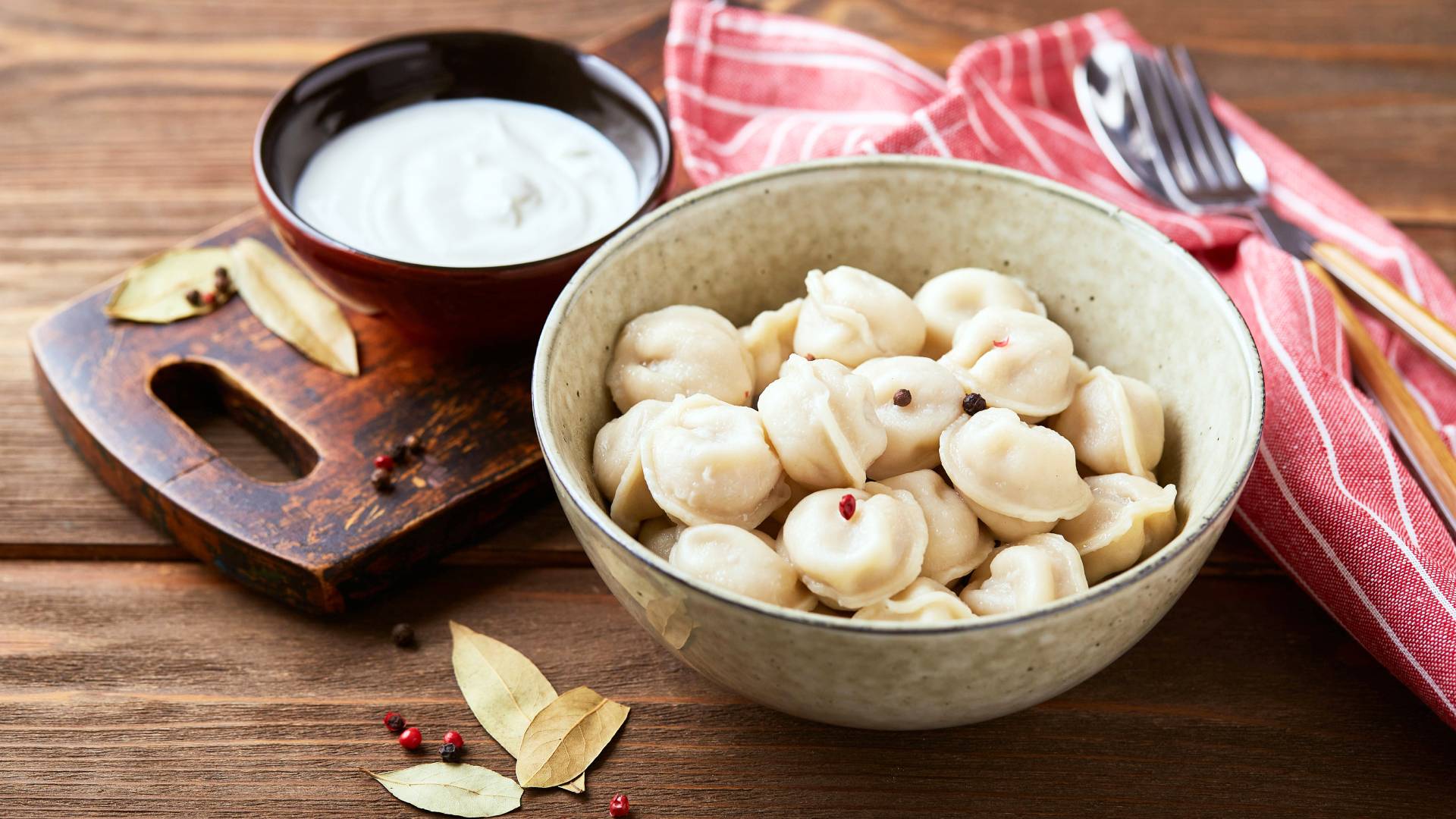 К вареным или жареным изделиям полагается вилка, но без ножа. Разрезать пельмени строго запрещено, как и запихивать в рот целиком. Если размер кушанья слишком велик, аккуратно разломите его столовым прибором, наколите небольшой кусок и обмакните в соус.