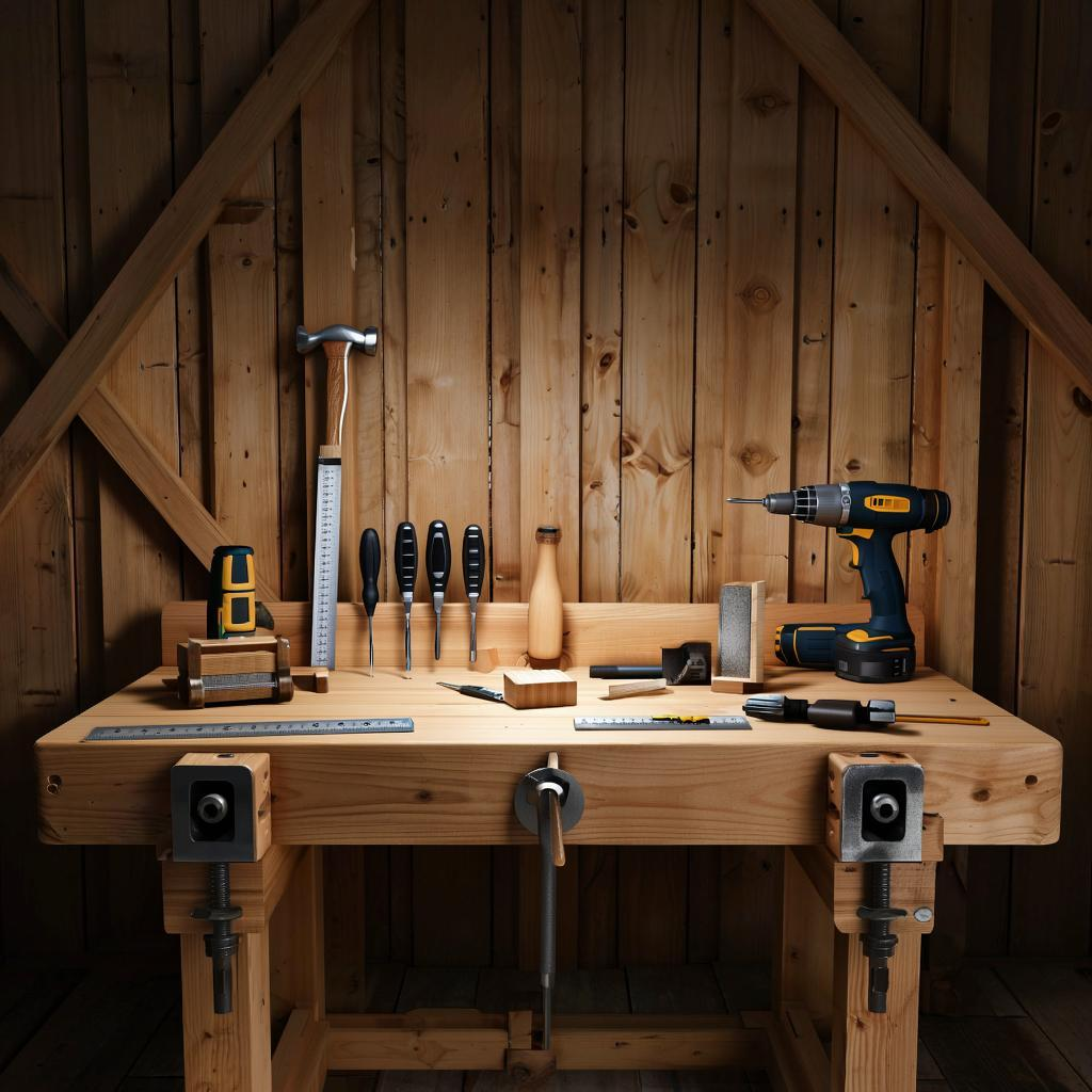 При проектировании такого верстака важно учитывать и материалы. Дерево остается классическим выбором, благодаря своей прочности и долговечности. Также подойдут многослойные фанеры, устойчивые к влаге. Что касается фурнитуры, то шариковые направляющие и надежные петли – обязательные элементы для обеспечения долговечности и легкости использования.