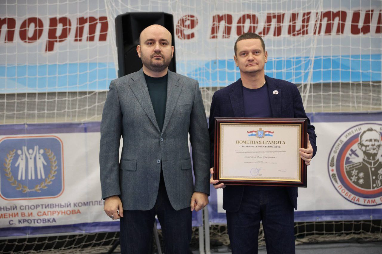 Вячеслав Федорищев наградил организаторов и спонсоров всероссийских соревнований по самбо почетными грамотами, благодарностями, благодарственными письмами губернатора Самарской области, а также вручил медали и кубки победителям и призерам состязаний.
