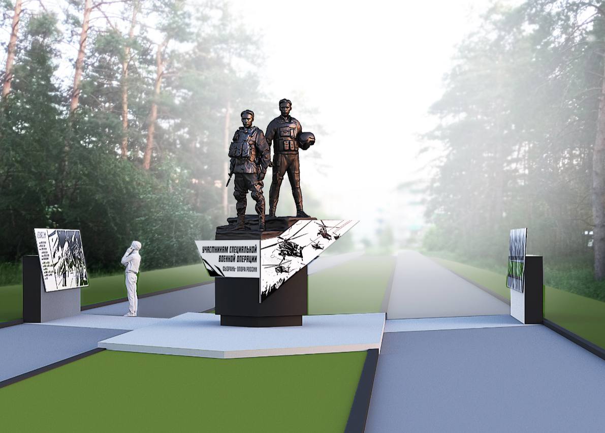 Проект подготовлен известным российским скульптором-монументалистом и архитектором Денисом Анатольевичем Стритовичем и представляет собой скульптуру вертолетчика и пехотинца размером 4,5 метра с постаментом. С двух сторон будут размещены пилоны с изображением.