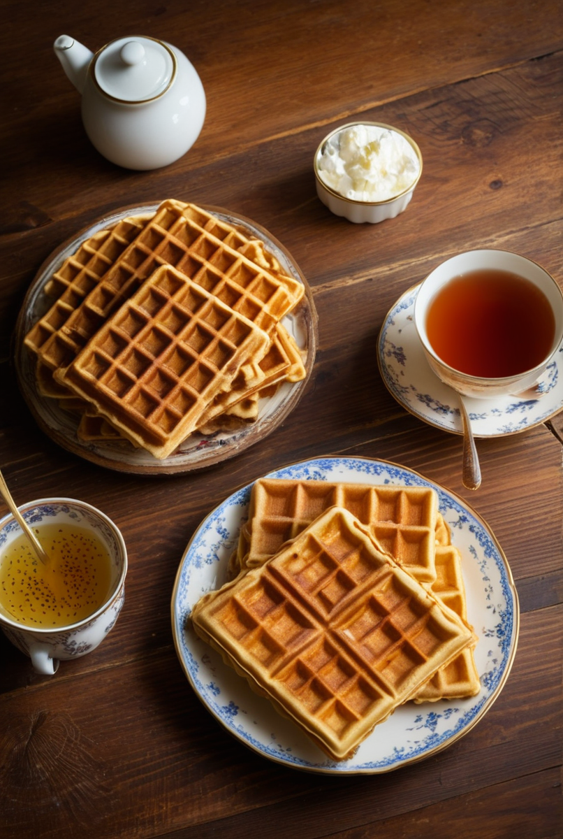 Вафли предлагают богатство вкусов и текстур, начиная от пышных бельгийских вафель с легкой хрусткостью и воздухом внутри, до более плотных венских вариаций. К тому же, тонкие вафли известны своей особой ломкостью — они буквально тают во рту. Каждое десертное изделие привносит свою изюминку в сопровождение к чаю.