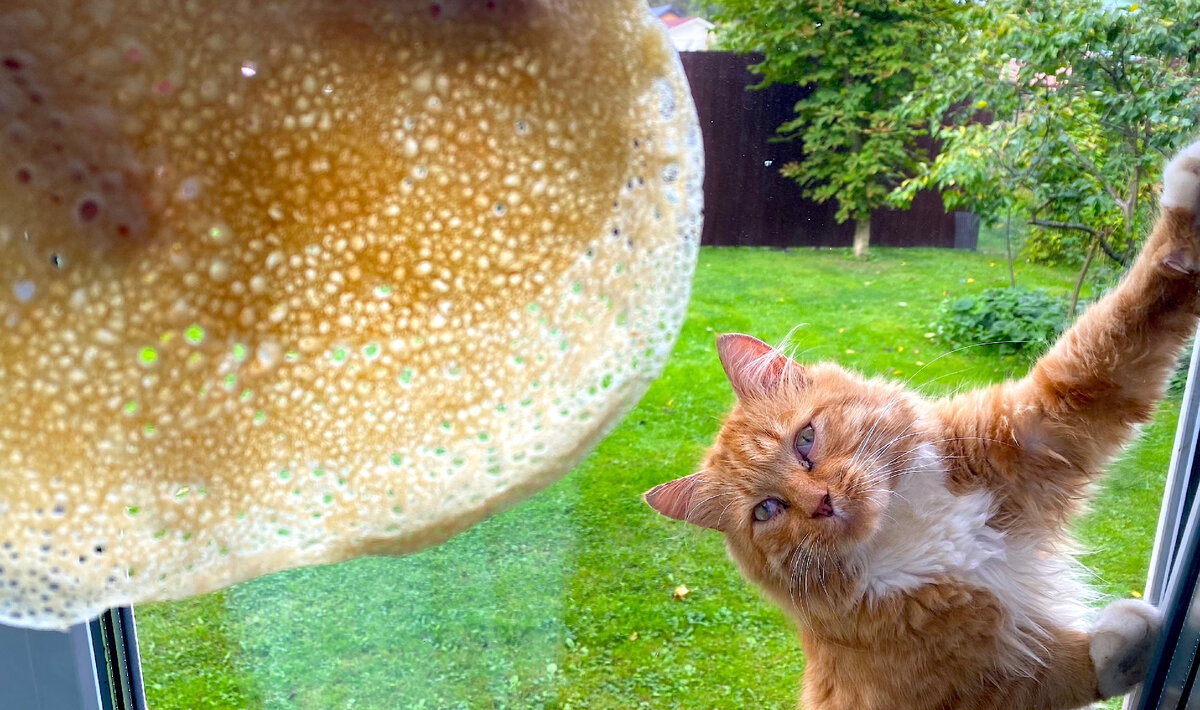 После этого в тесто вводится мука, а затем молоко и растительное масло. Конечная консистенция должна напоминать легкую пенку. Затем разогревается сковорода, на которую тонким слоем распределяется тесто, позволяя блинам подрумяниться с обеих сторон. Применение сковороды с антипригарным покрытием облегчит процесс выпекания.