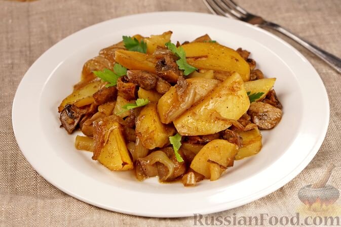 - Ингредиенты: картофель, шампиньоны, лук, соевый соус и любимые специи.