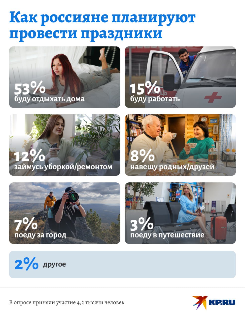 KP.RU: 53% опрошенных планируют все ноябрьские праздники отдыхать дома