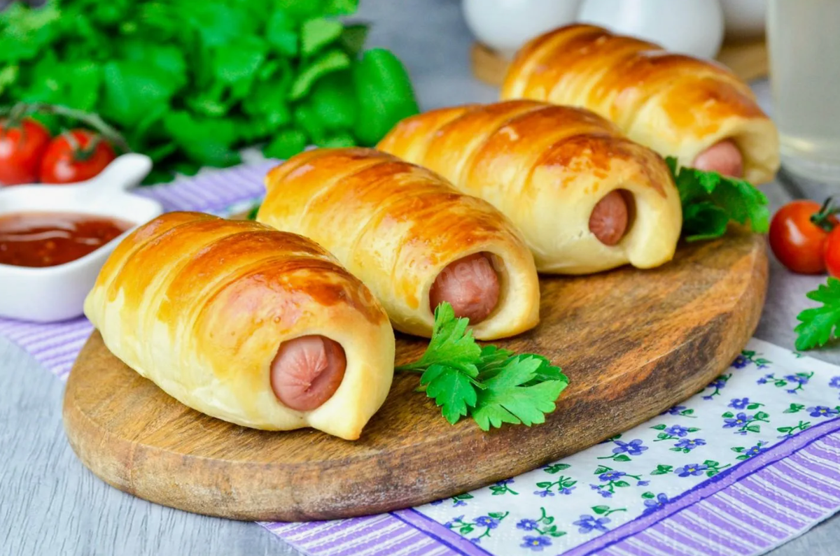Сосиски в дрожжевом тесте, как в школьной столовой